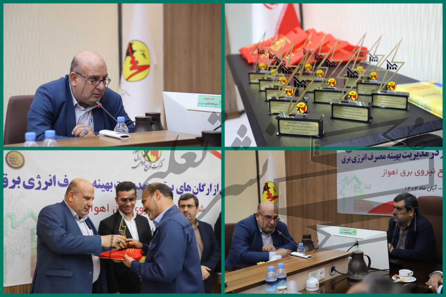 آیین تقدیر از دستگاه‌های برتر در مدیریت مصرف انرژی برق، چهارشنبه، ۲۸ آبان‌ماه، در سالن جلسات شرکت توزیع برق اهواز برگزار شد؛ مراسمی که با محوریت نقش‌آفرینی سازمان‌ها در پایداری شبکه، صرفه‌جویی و تولید انرژی همراه بود و در پایان، برترین دستگاه‌ها معرفی و تقدیر شدند.