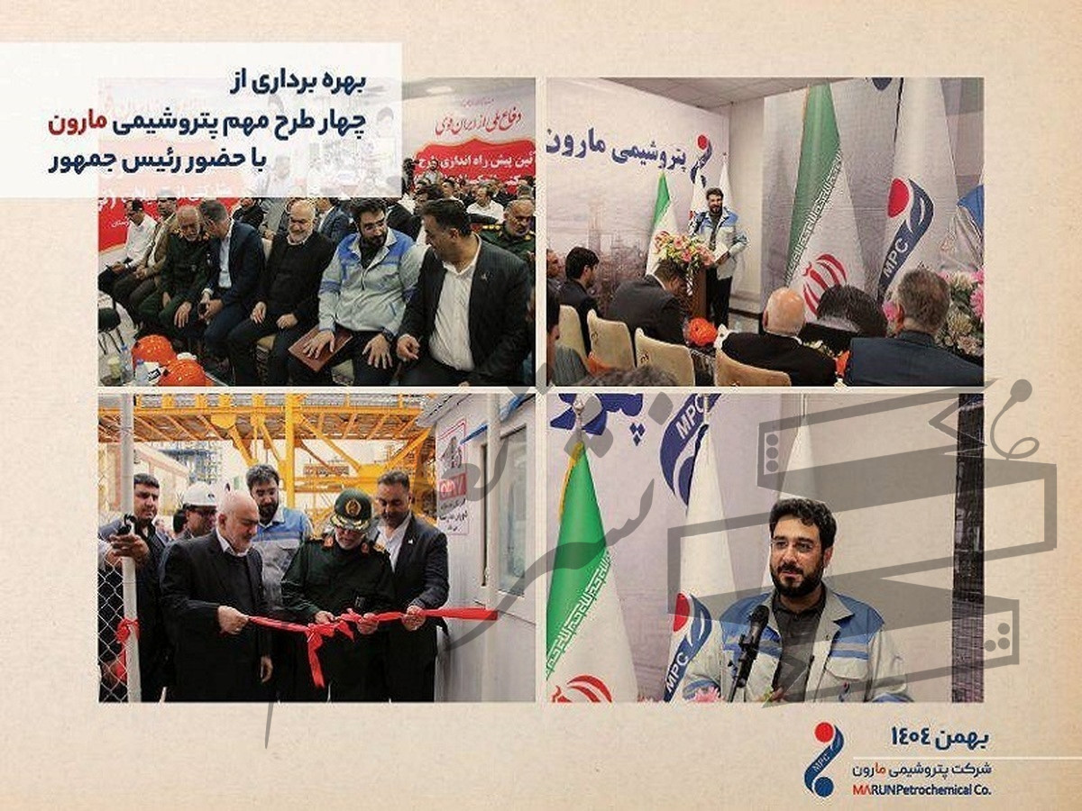 به گزارش پایگاه خبری نشر تعلیم، به مناسبت دهه مبارک فجر، روز سهشنبه ۱۴ بهمن ۱۴۰۴ در آیینی با حضور رئیسجمهور ۱۲۰ طرح مشارکتی وزارت دفاع و پشتیبانی نیروهای مسلح در بخشهای مختلف دفاعی، نفت، گاز و پتروشیمی و … افتتاح و به بهرهبرداری رسید که از این تعداد (۱۲۰)، پتروشیمی مارون چهار طرح را به خود اختصاص داد که جزئیات این طرحها به شرح ذیل میآید: