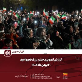 جشن «فجر و امید» در فولاد خوزستان با تکبیر، نورافشانی ، برافراشتن و اهتزاز پرچم میهن اسلامی و پرچم یااباصالح المهدی (عج) همراه با برنامههای متنوع فرهنگی از قبیل اجرای گروه بین المللی خدام الزهرا(س) ، هنرنماییگروه طنز نیمرخ ، موسیقی ، مسابقات متنوع و .. برگزار شد.
