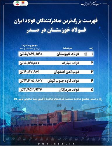 فولاد خوزستان در صدر فهرست بزرگترین صادرکنندگان فولاد ایران
