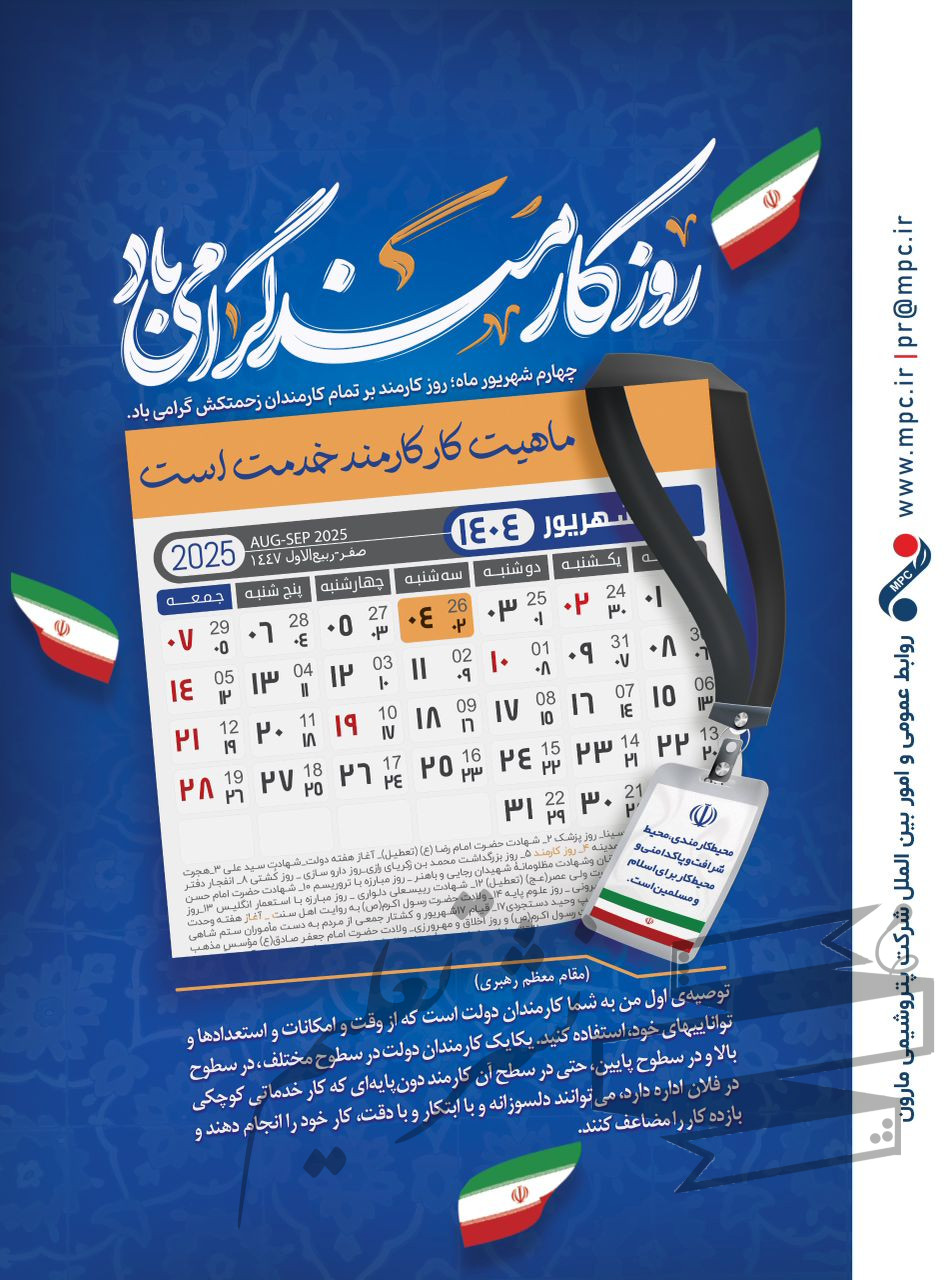 ماهیت کار کارمند خدمت است. روز کارمند گرامی باد، روابط عمومی و امور بینالملل شرکت پتروشیمی مارون