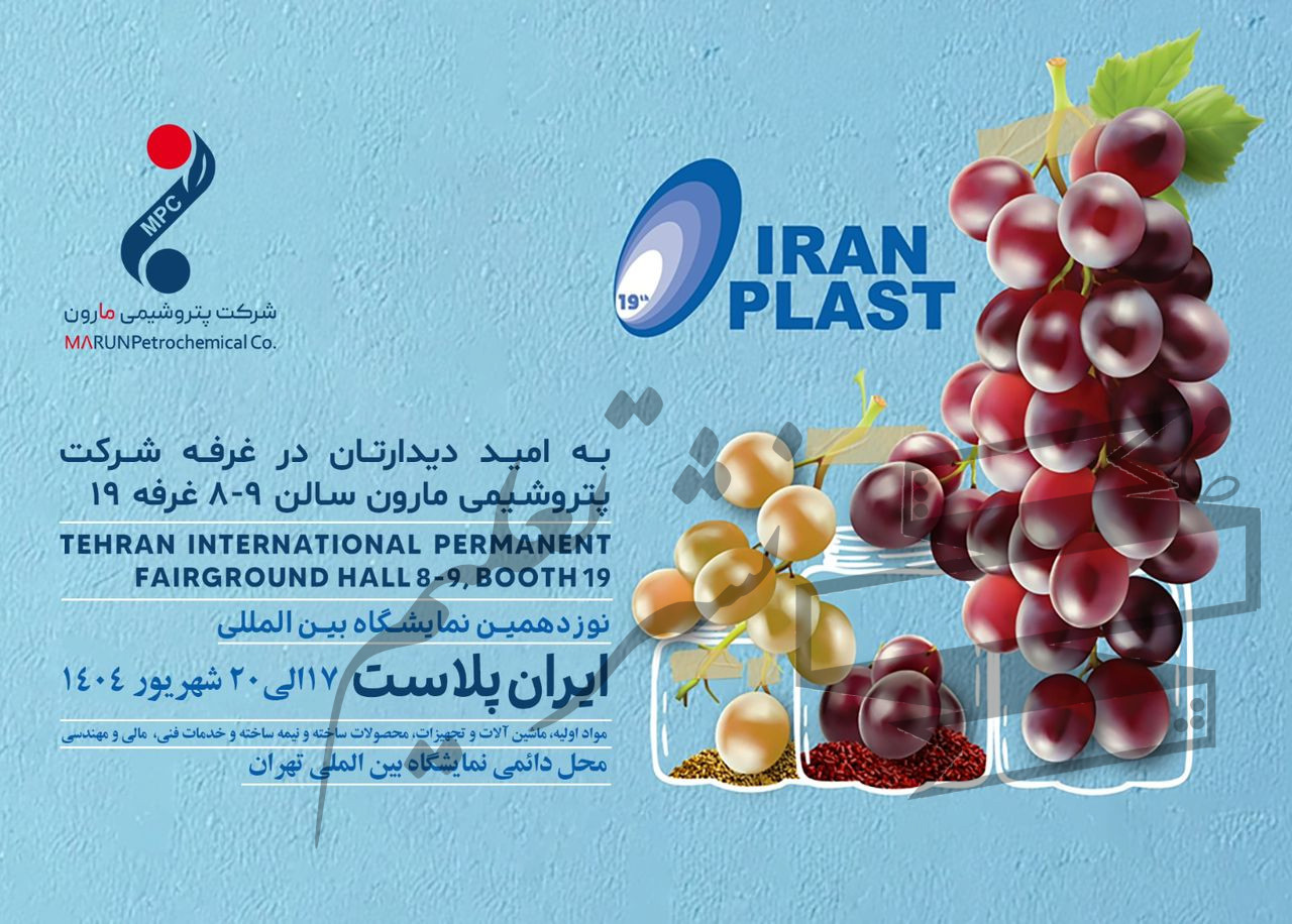 نوزدهمین نمایشگاه بینالمللی ایران پلاست به امید دیدارتان در غرفه شرکت پتروشیمی مارون سالن ۹-۸ غرفه ۱۹