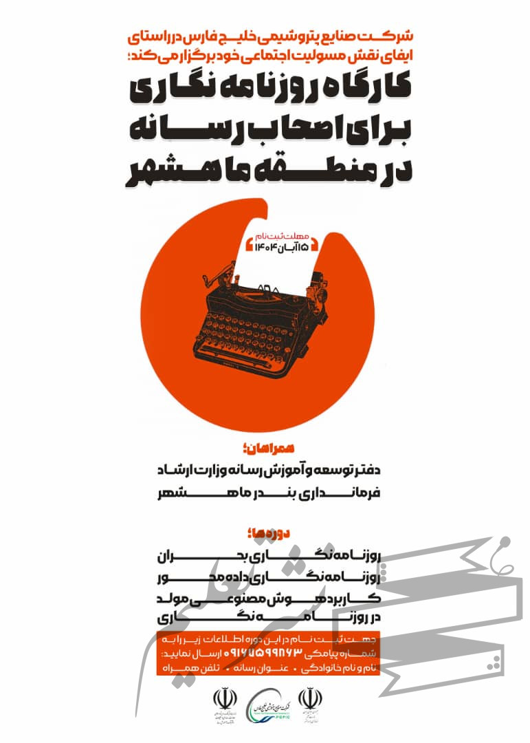 در راستای ایفای نقش مسئولیت اجتماعی، شرکت صنایع پتروشیمی خلیج فارس با همکاری دفتر توسعه و آموزش رسانه وزارت فرهنگ و ارشاد اسلامی و فرمانداری بندر ماهشهر، کارگاه آموزشی روزنامهنگاری را ویژه اصحاب رسانه در منطقه ماهشهر برگزار میکند.